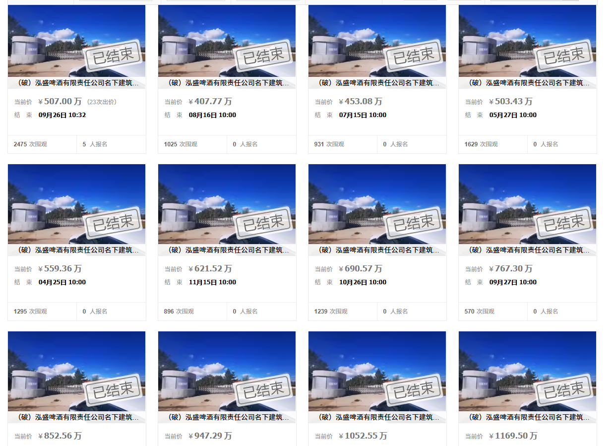 不过此次拍卖九龙配资,并不是这个啤酒厂第一次拍卖了,而是第18次拍卖了,前面17次拍卖都流拍,这样看来,啤酒厂能拍卖出去也是不容易了,而且最后还出现了溢价。此前的17次拍卖中,第一次拍卖的起拍价是2200.62万元,流拍后,到了第17次拍卖,起拍价已经降到了407.77万元,但还是流拍。而最终的成交价,虽然比第一次拍卖低了一千多万,但还是比第17次拍卖的流拍价高出了约100万元,所以,这成交价,不知道竞得者算是捡漏了还是高价竞得。